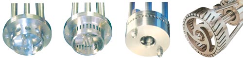 *组合定子头:带孔的定子组合细网筛提供了最大可能的剪切作用,严格的乳化要求或精细粉末的悬浮均可由组合定子头有效地加以完成,适用于低粘度液体的混合,其剪切速率最大,最适宜于乳液的制作及小颗粒在液体中的粉碎、溶解过程。